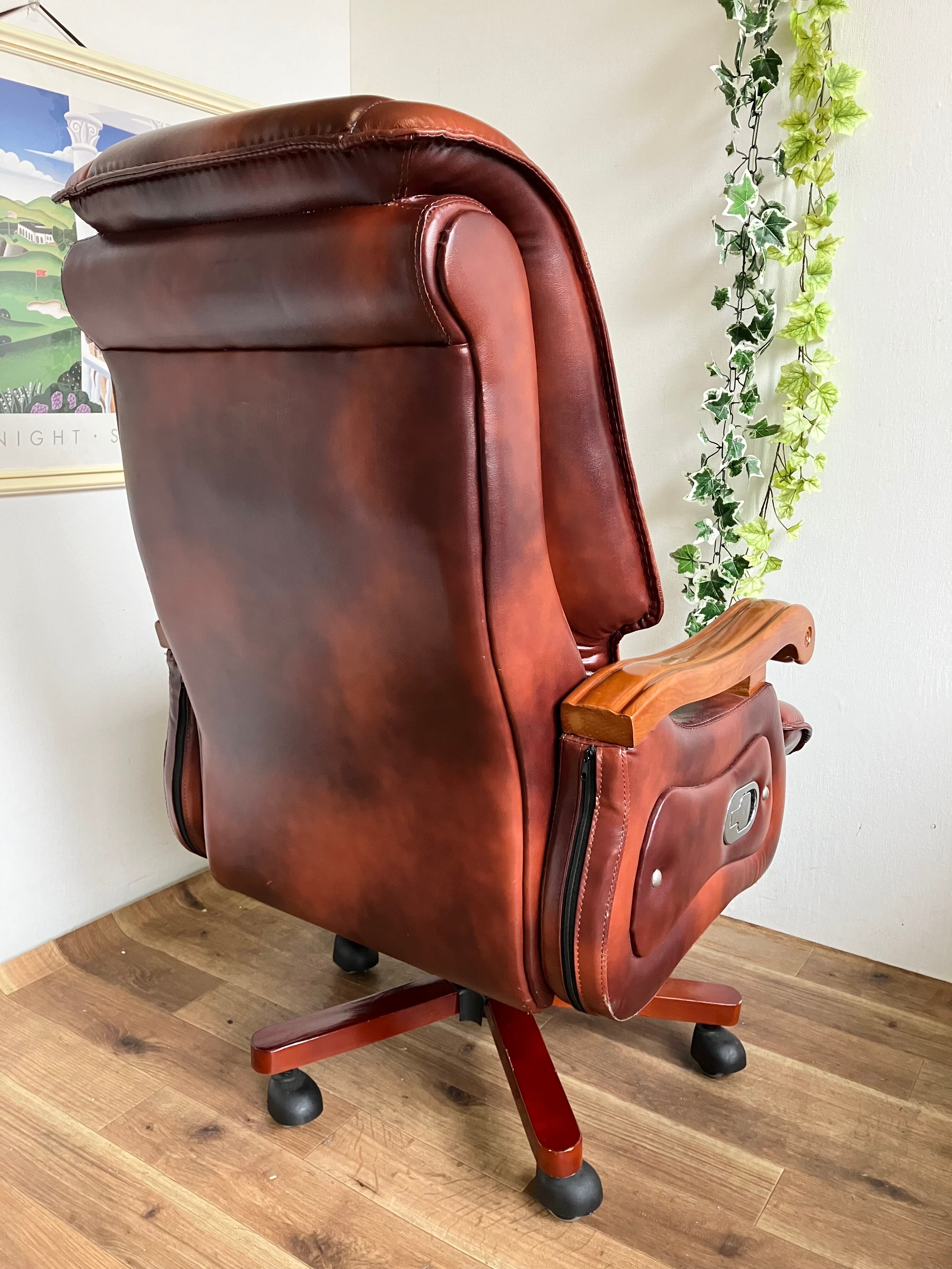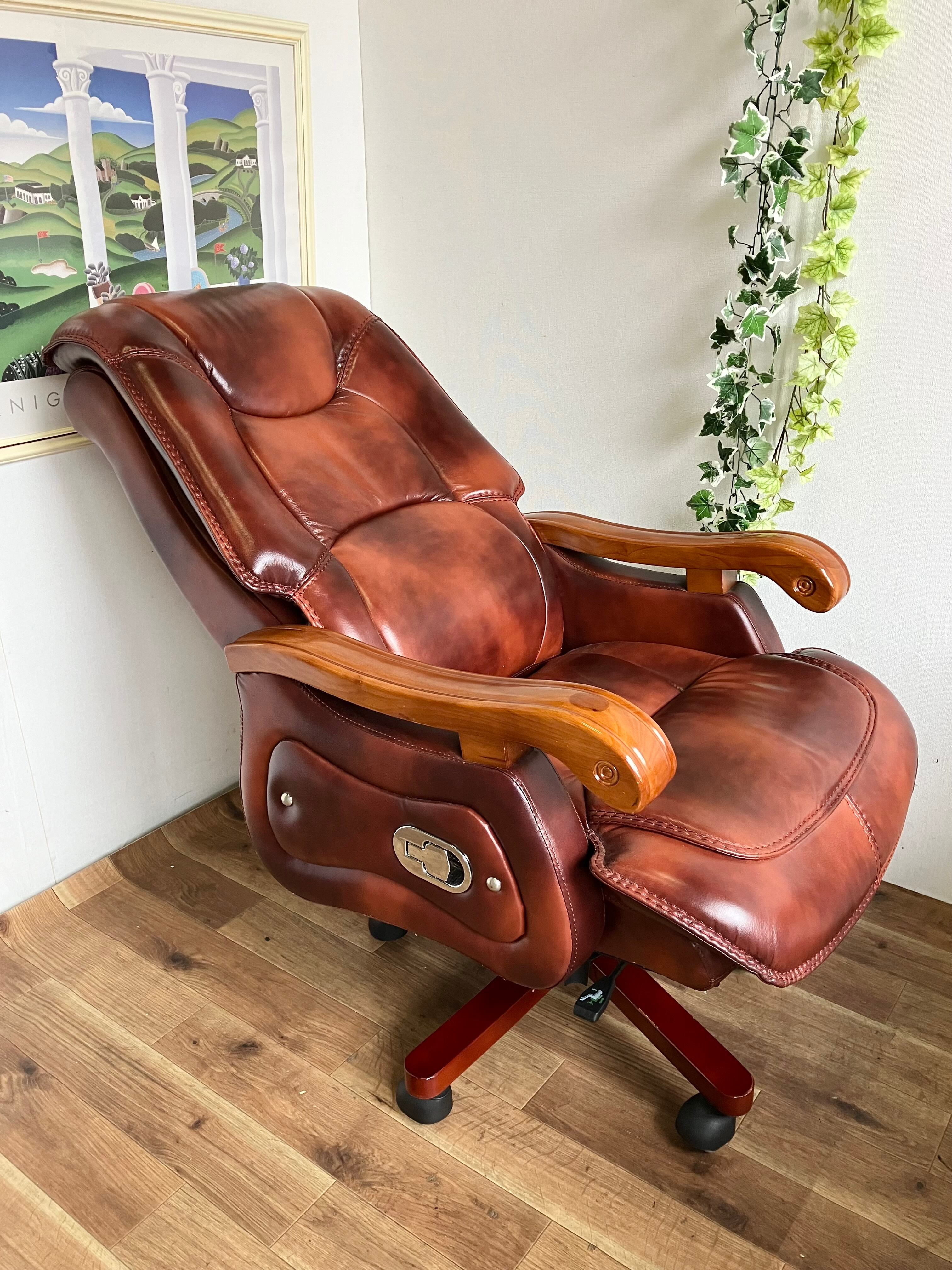 本革張りのオフィスチェアは重厚感がありボスチェアのような存在感です☆