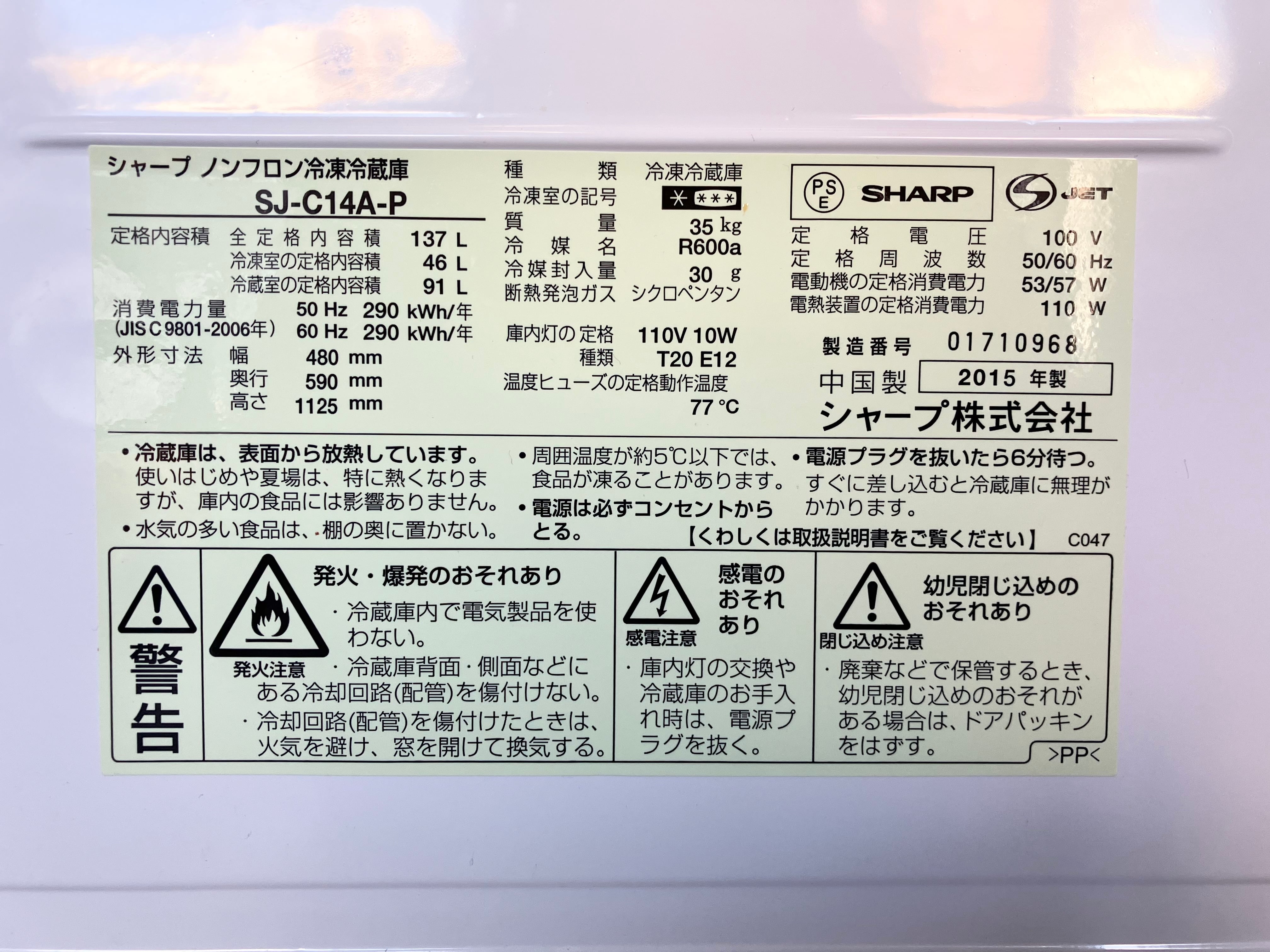 SHARP 137L ノンフロン冷凍冷蔵庫 2015年製