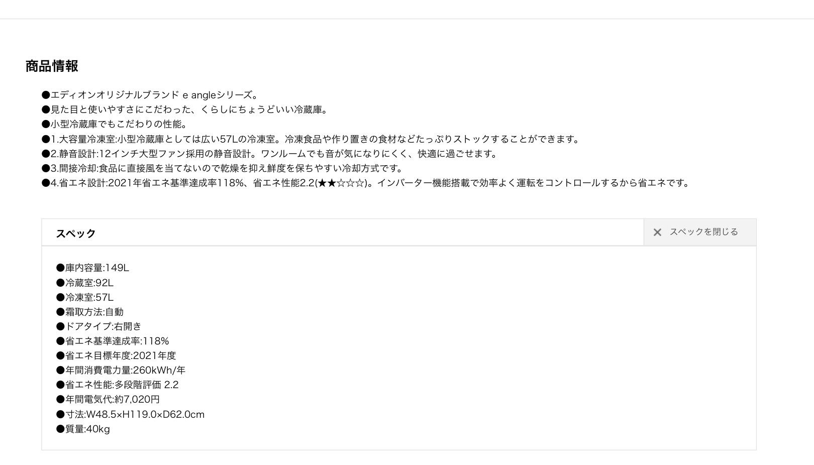 2019年製 EDION 149L ノンフロン冷凍冷蔵庫