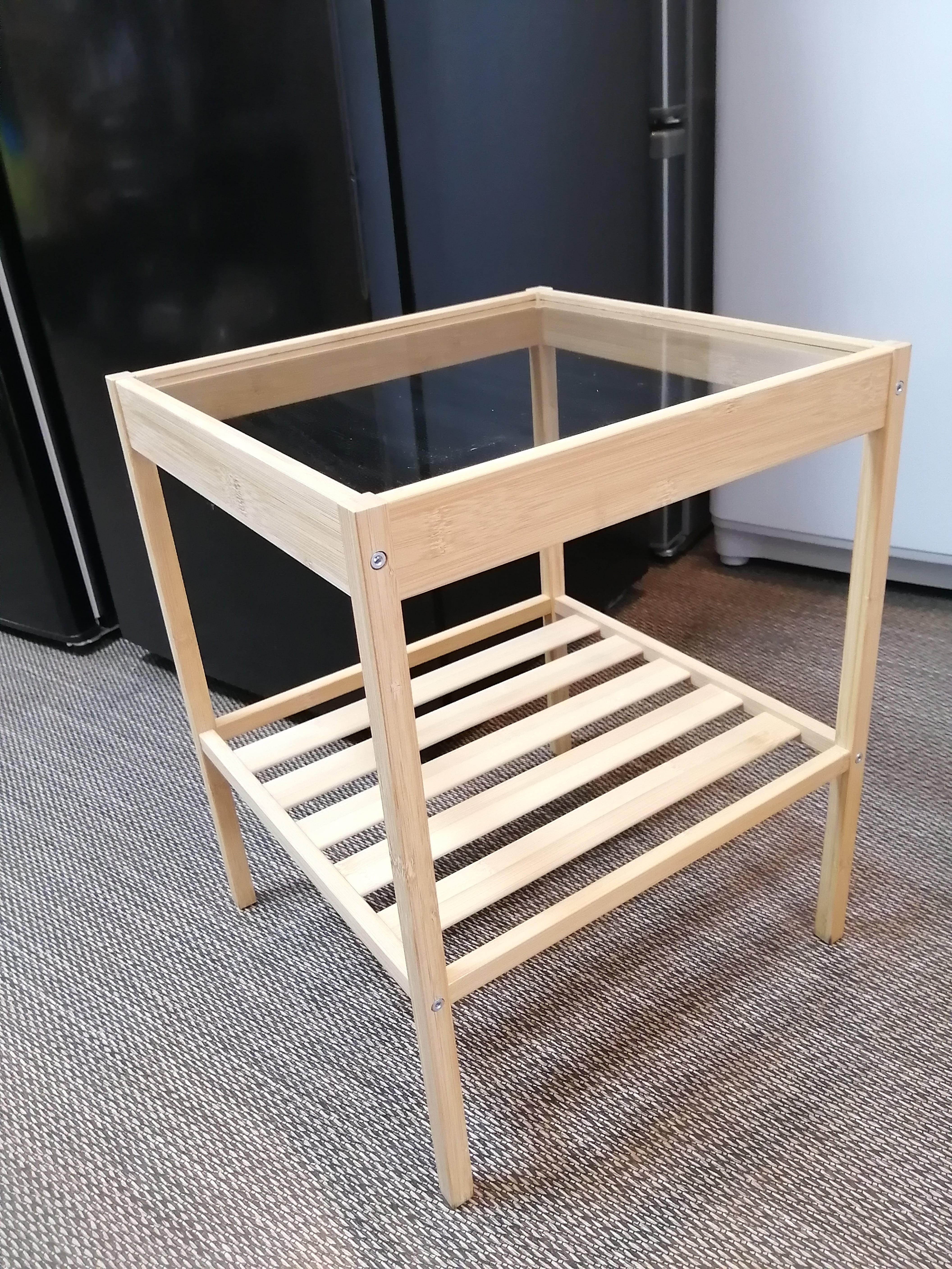 ガラスの天板と木のナチュラルなサイドテーブルです。