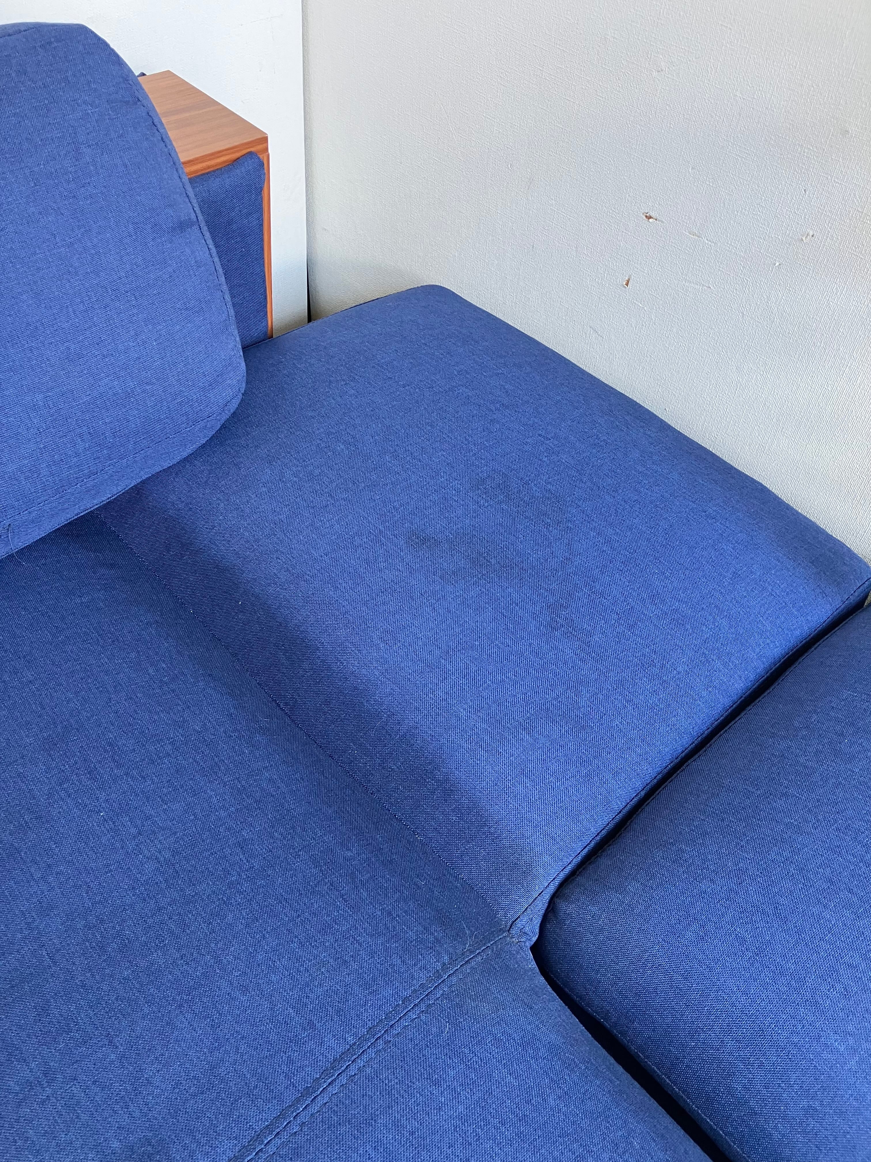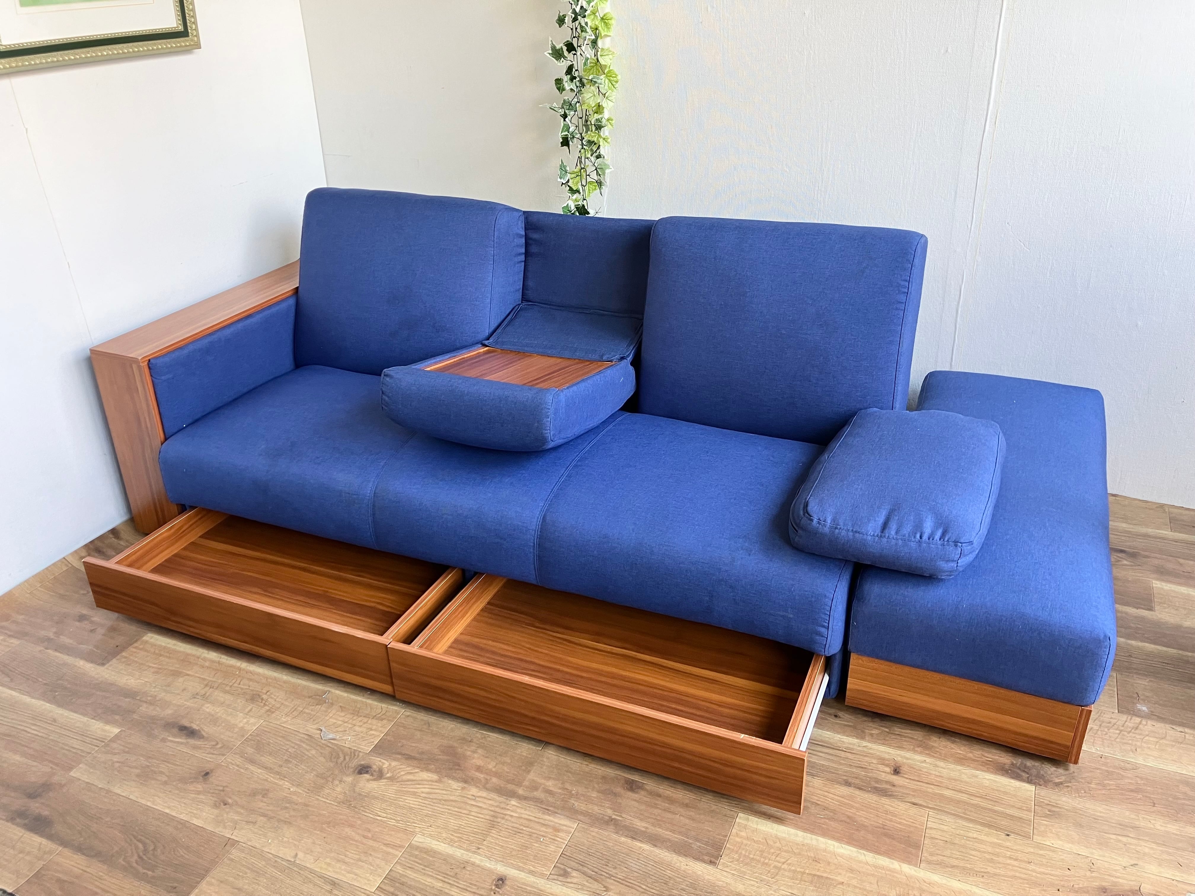 鮮やかなブルーがとても印象的な3人掛けソファです☆