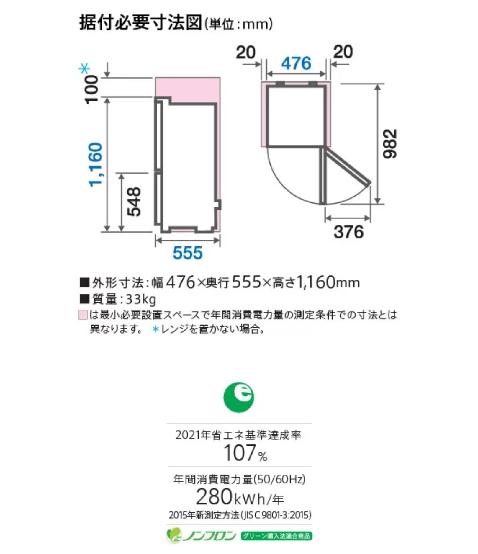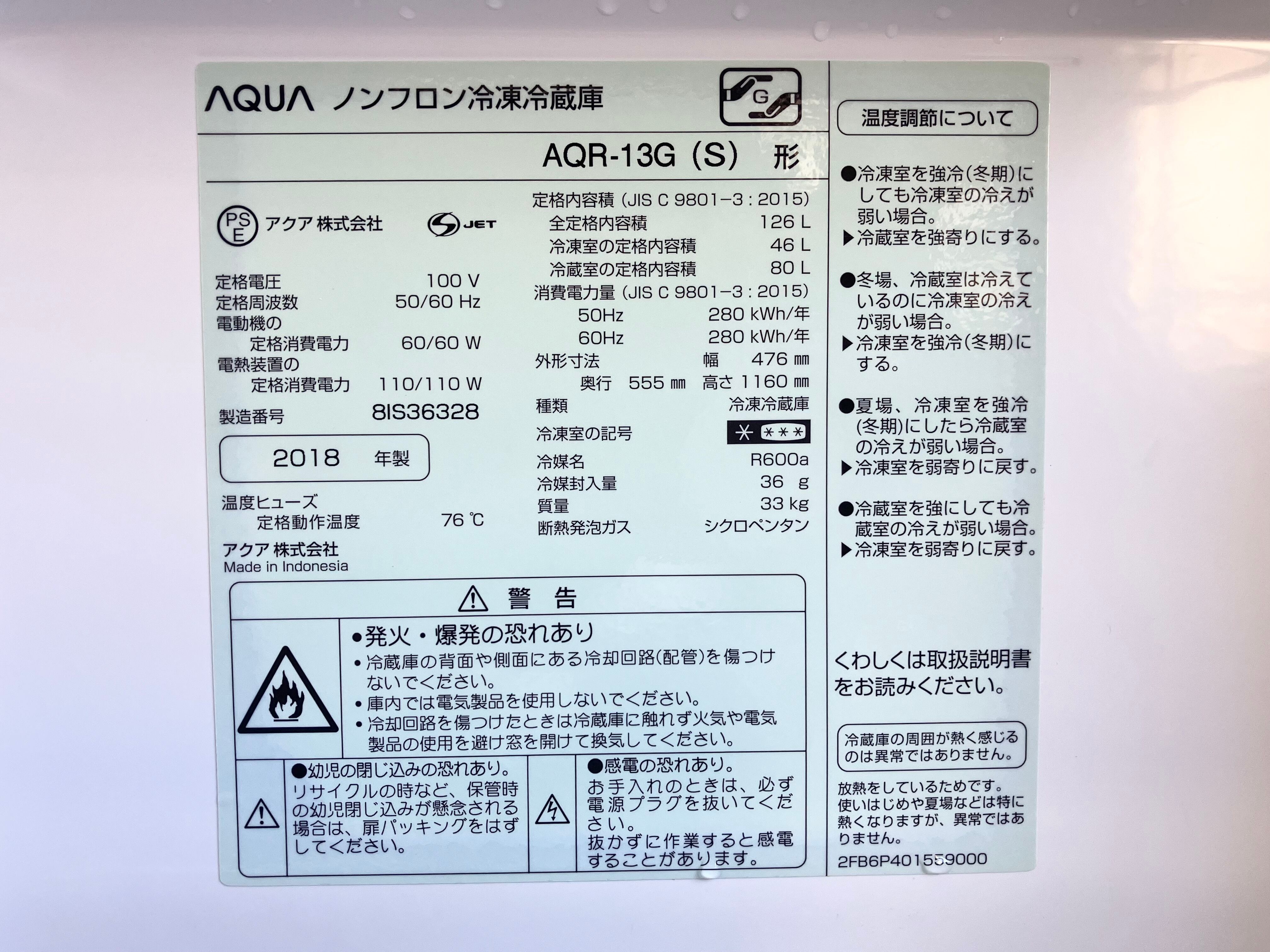 AQUA 126L ノンフロン冷凍冷蔵庫 2018年製