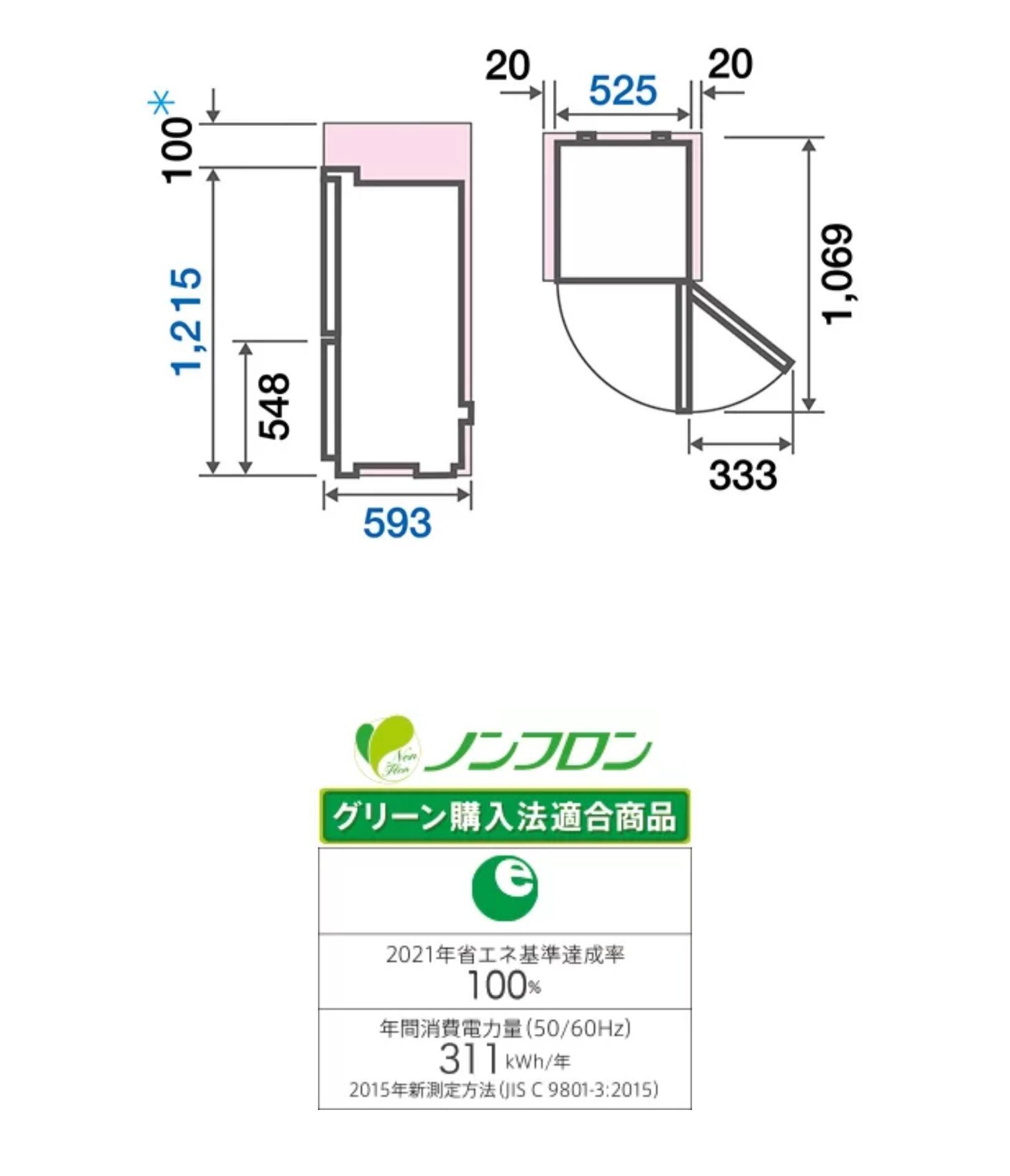2020年製 AQUA 168L ノンフロン冷凍冷蔵庫