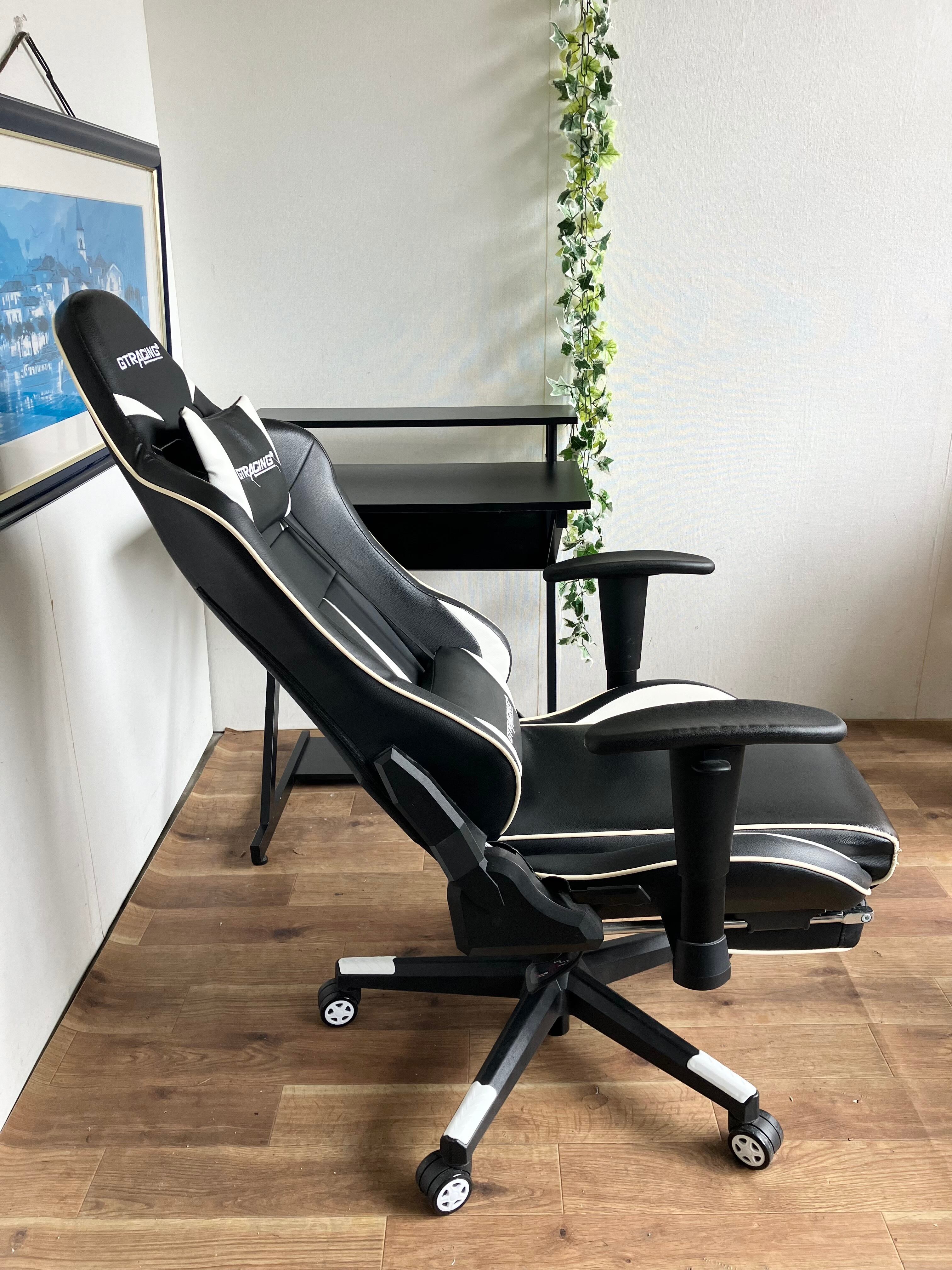 コンパクトなデスクとゲーミングチェアの2点セットです。