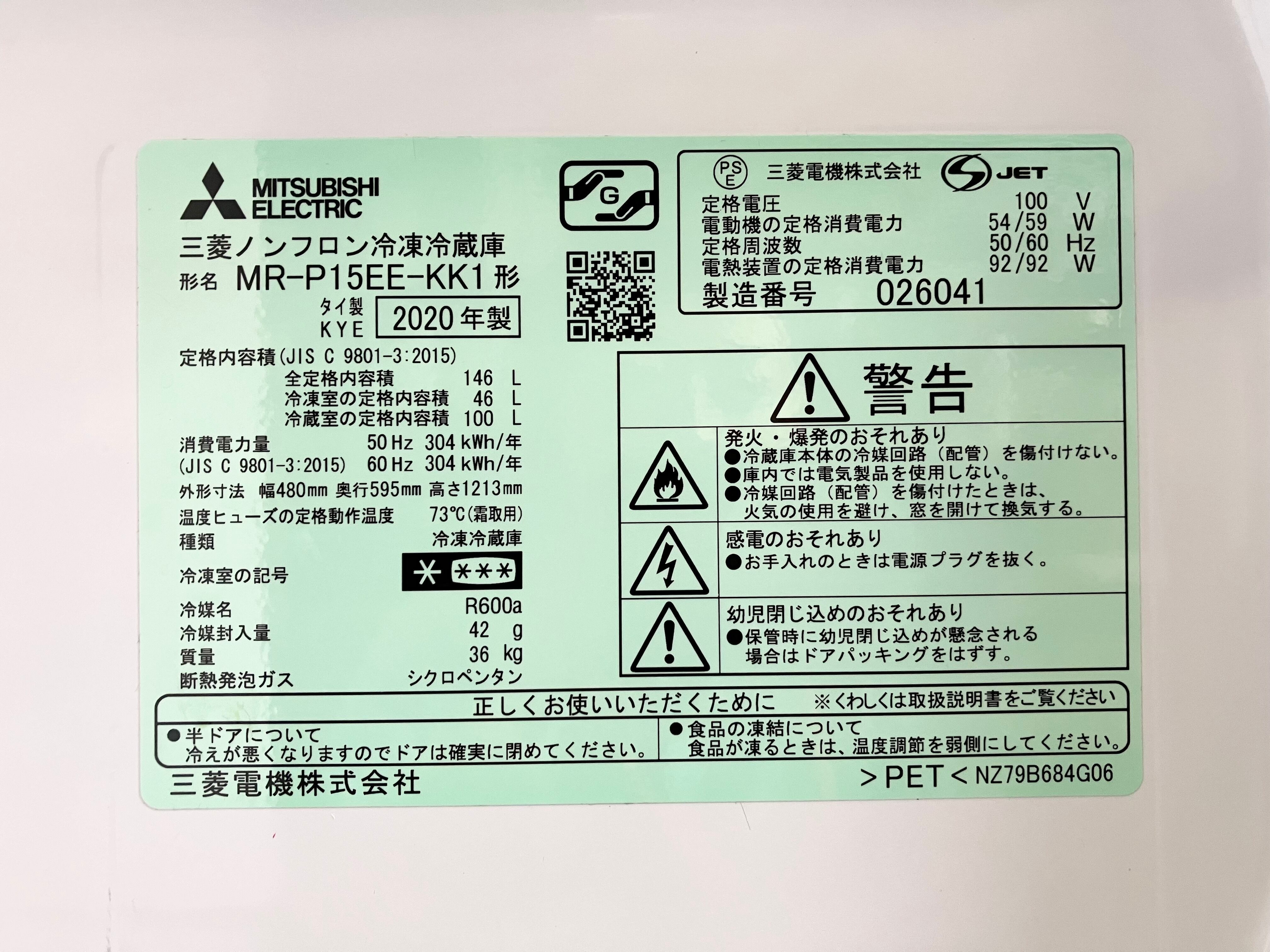 2020年製 MITSUBISHI 146L ノンフロン冷凍冷蔵庫