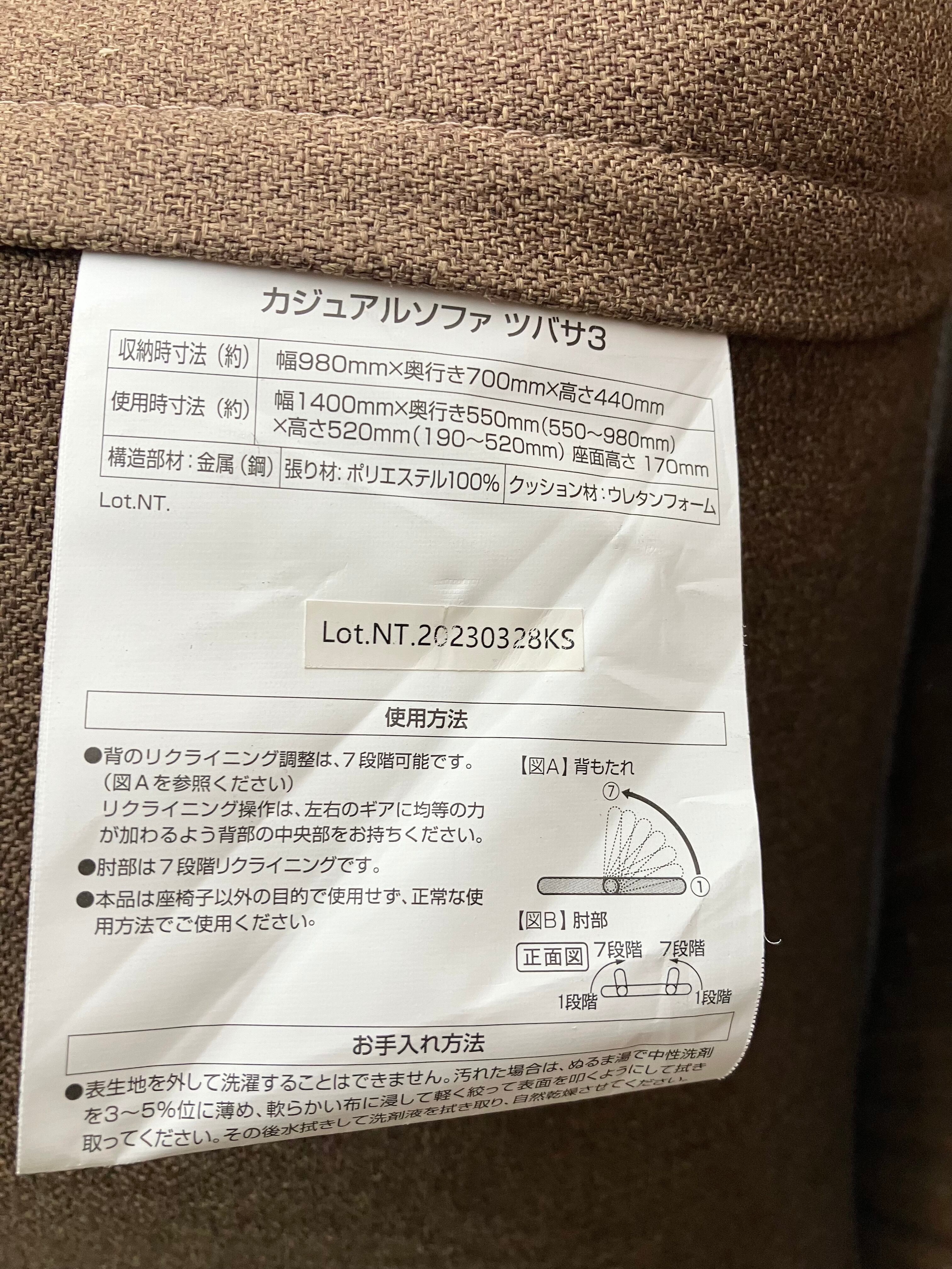 ニトリ「ツバサ」シリーズのコンパクトソファです。