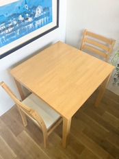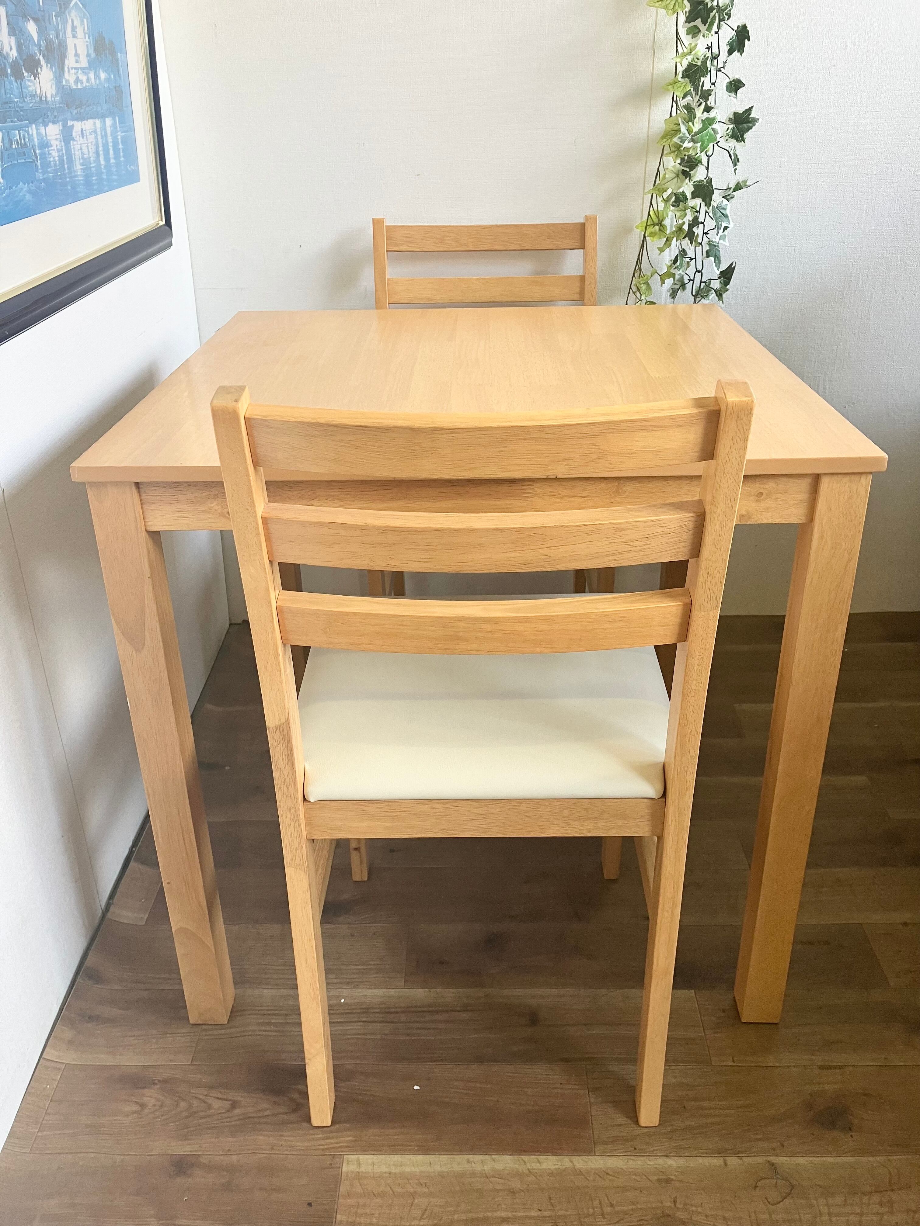 コンパクトなダイニングテーブルとチェア2脚の3点セットです。