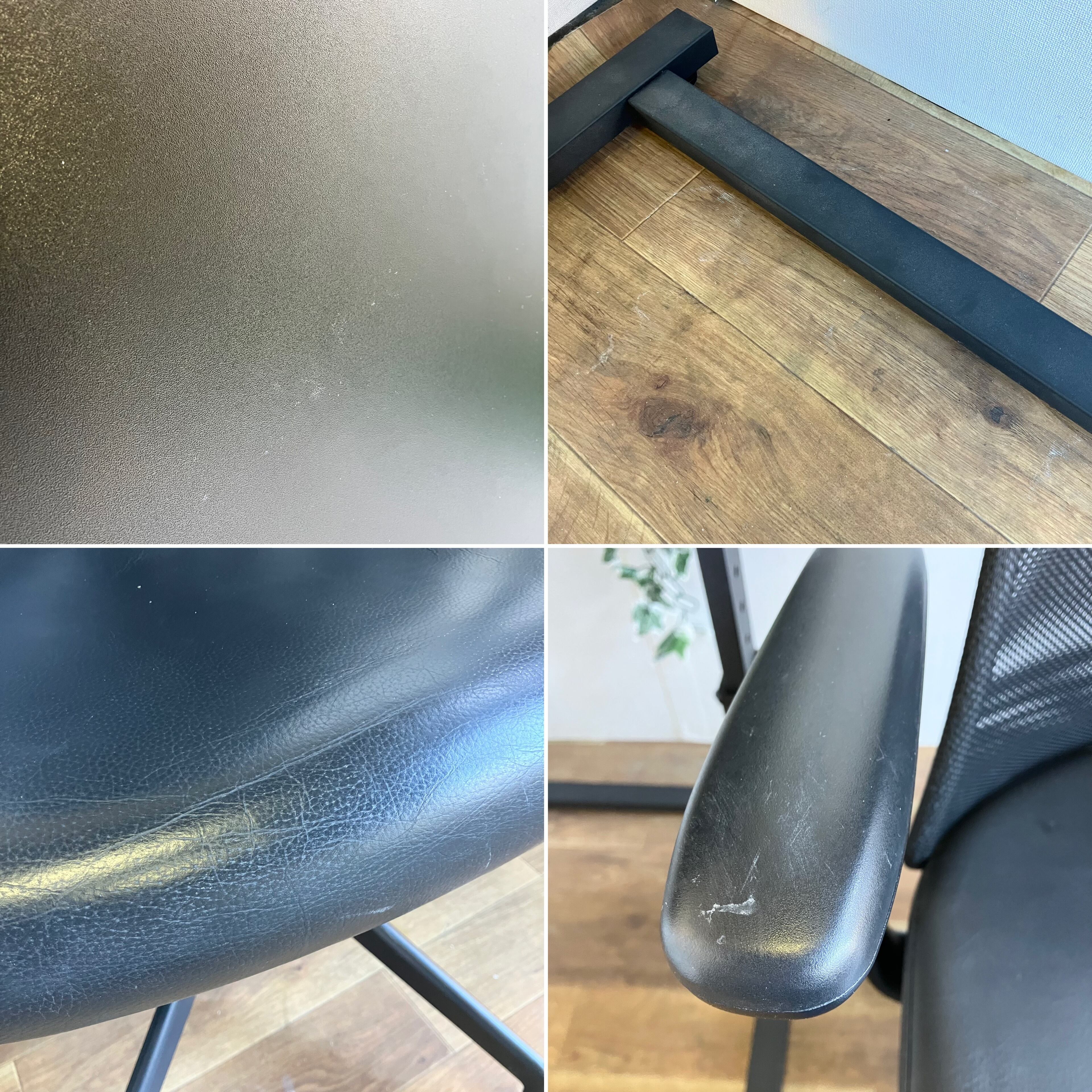 チェアは座面やアームに、デスクは脚や天板に使用感が感じられますが、その他大きく目立つようなダメージは見当たりません。