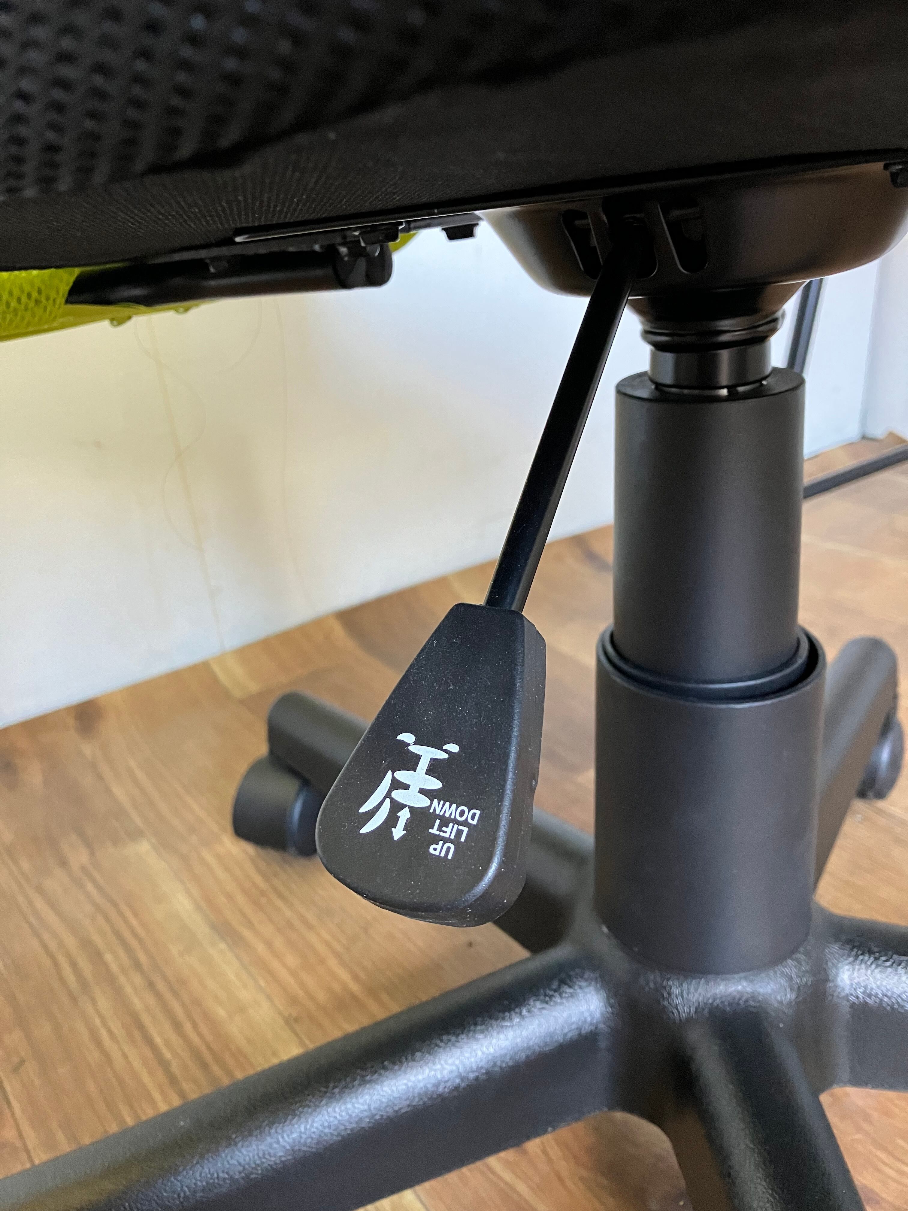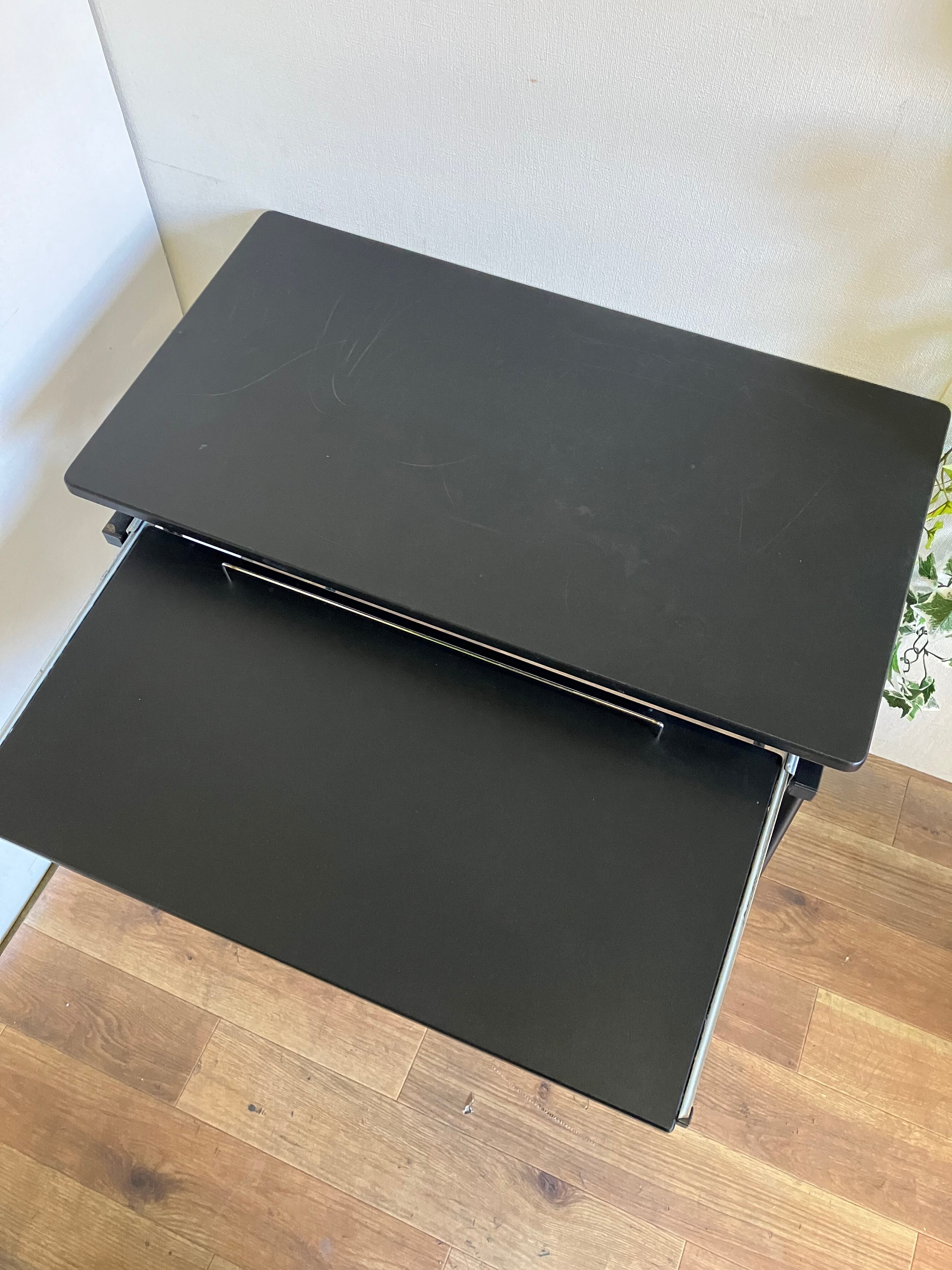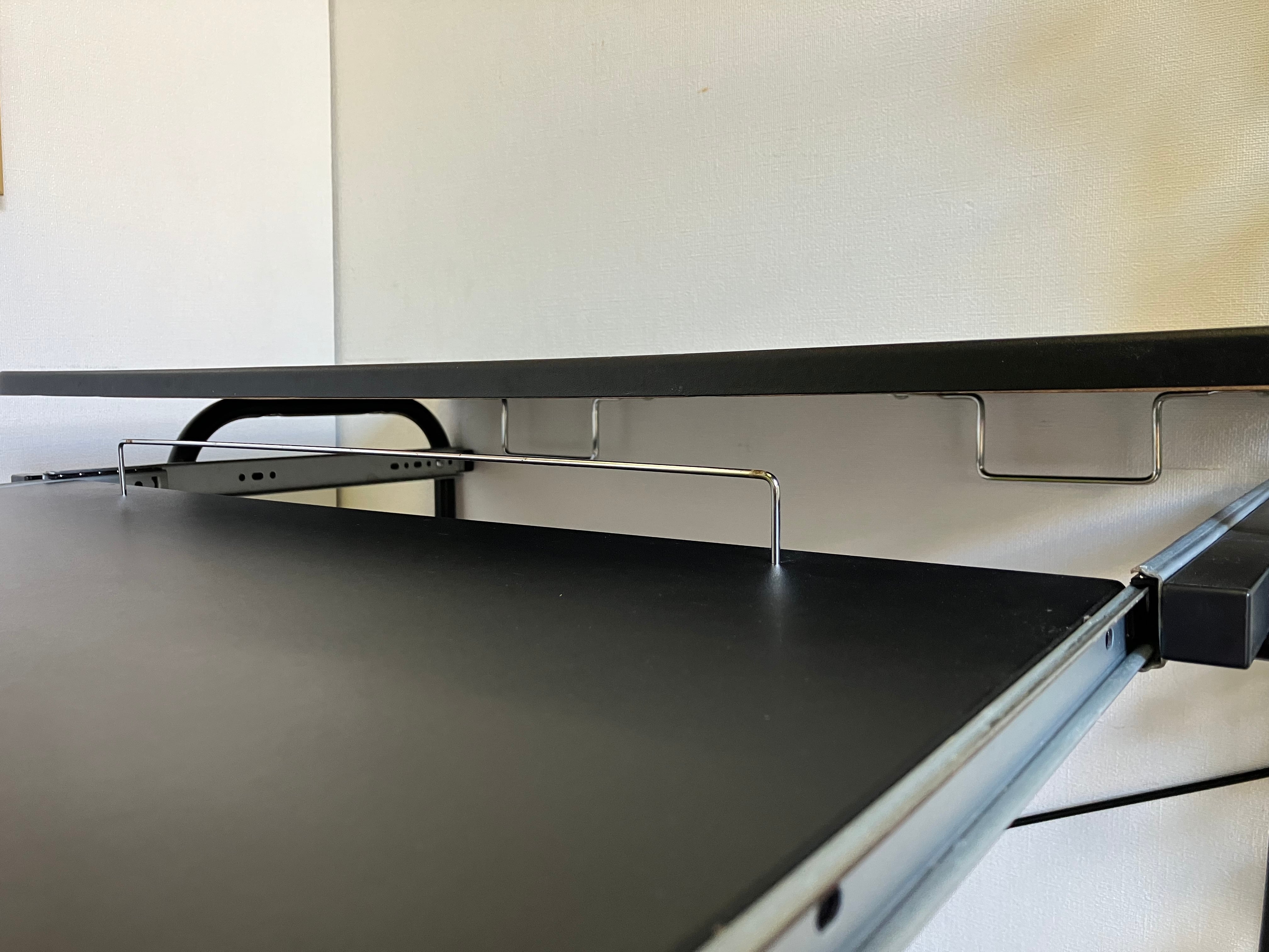 テーブルは天板下にスライド棚が出し入れできる機能があり、チェアは昇降機能付きです。