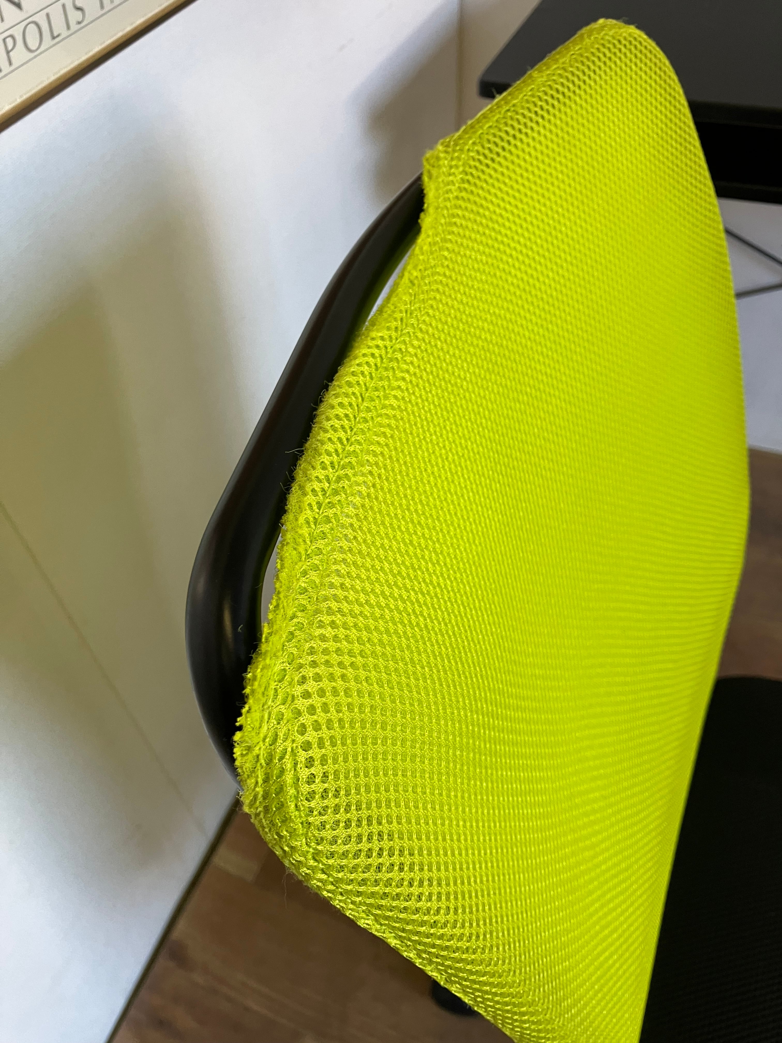 テーブル天板にはお写真10枚目のような使用感があり、チェアにはほつれや落ちきらないヨゴレがございますが昇降機能は問題なく、まだまだお使いいただけます。