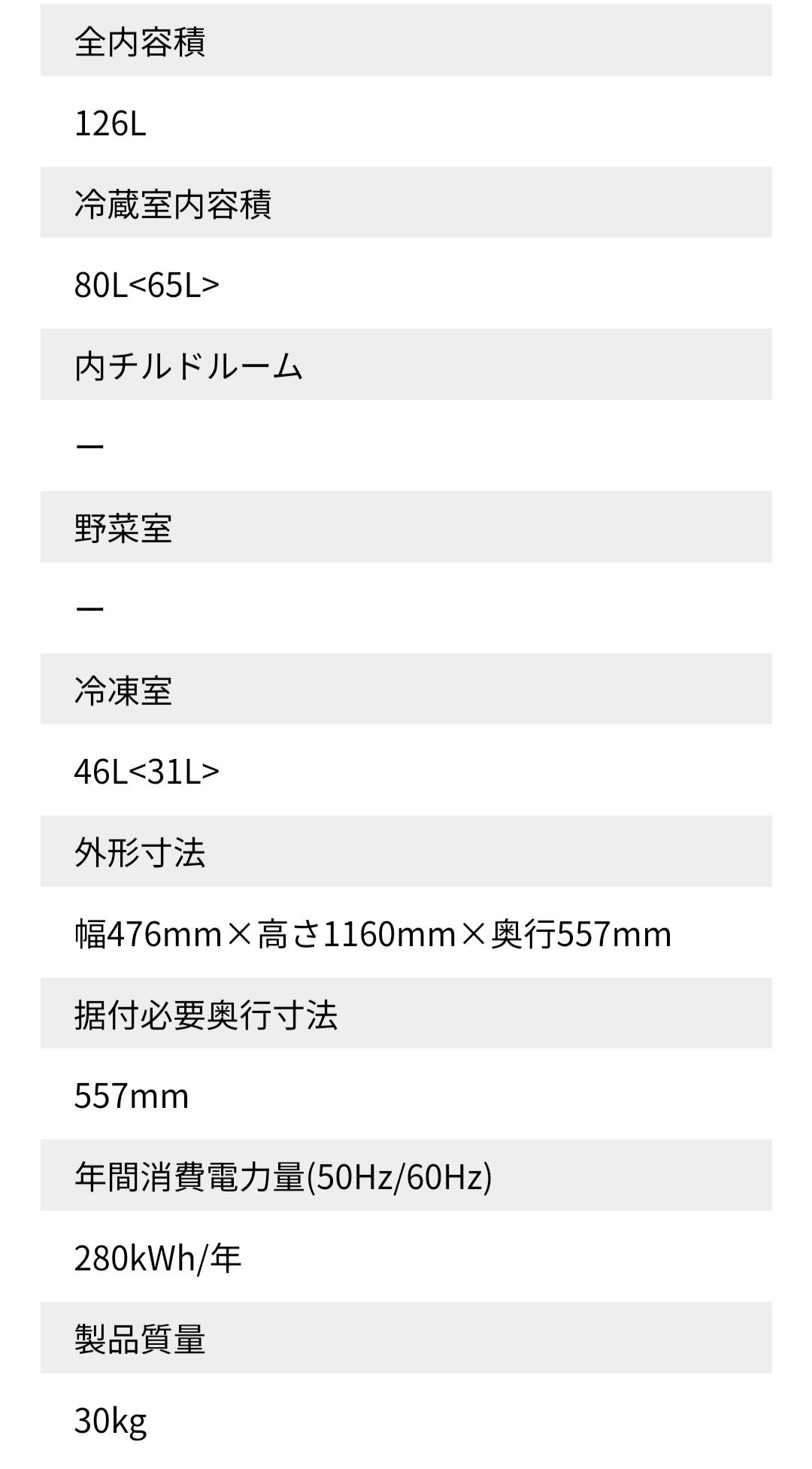 上が冷蔵室、下が冷凍室です。